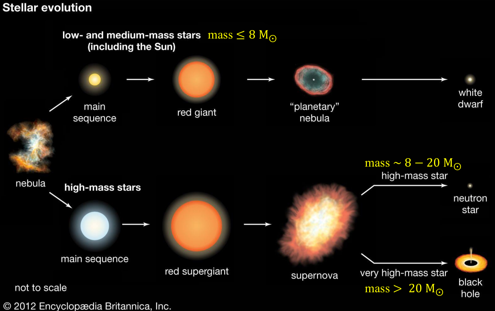 上图是low-mass恒星和high-mass恒星的生命周期。